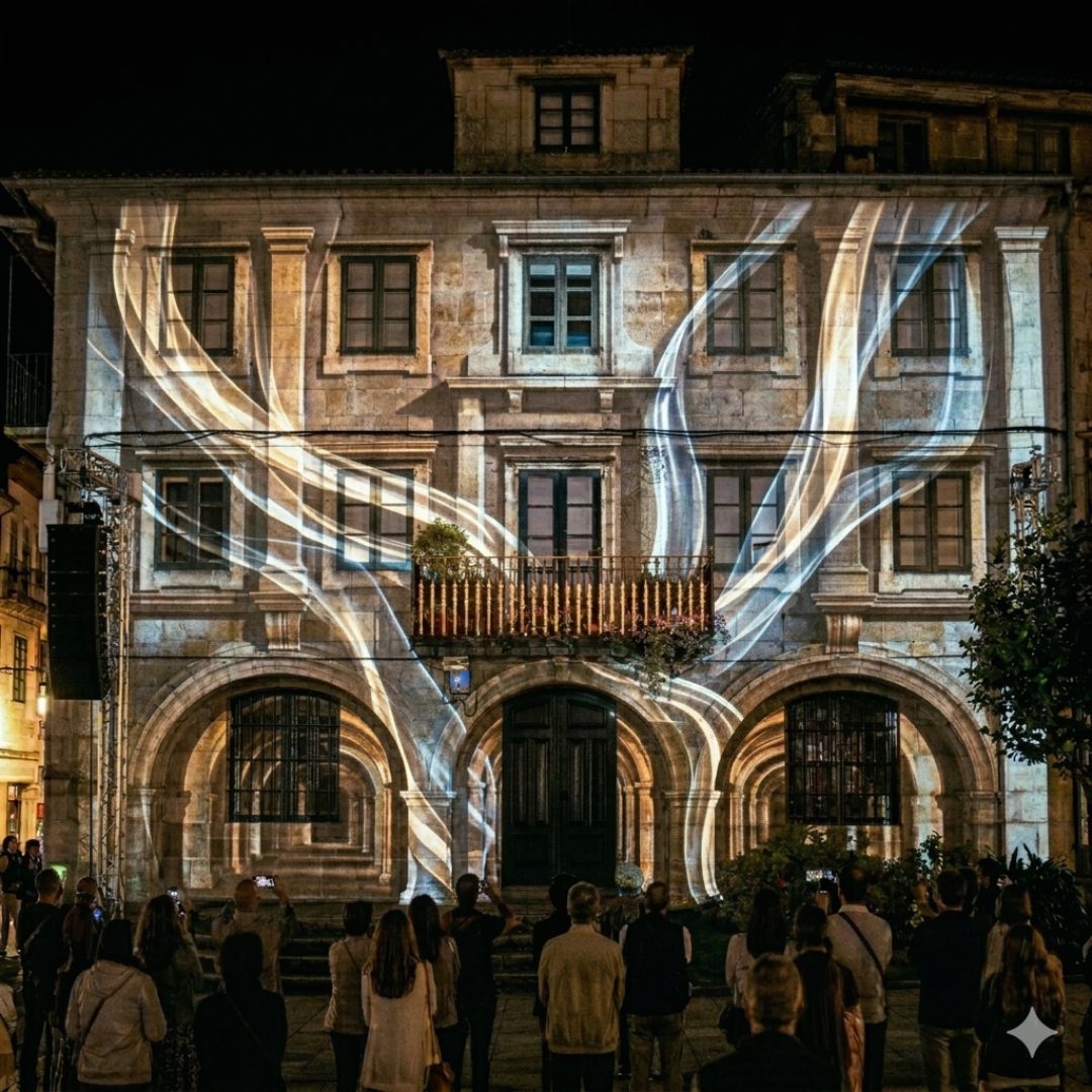 La iluminación arquitectónica transforma cómo se percibe un edificio o un espacio. Puede convertir una fachada en el centro de atención de una fiesta, una plaza en un escenario o un pazo en un entorno aún más especial.
