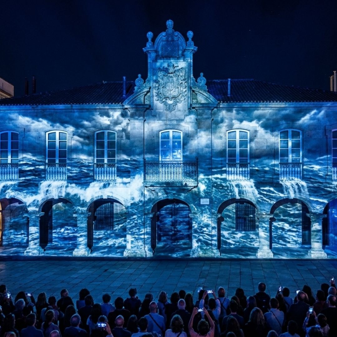 La iluminación arquitectónica transforma cómo se percibe un edificio o un espacio. Puede convertir una fachada en el centro de atención de una fiesta, una plaza en un escenario o un pazo en un entorno aún más especial.